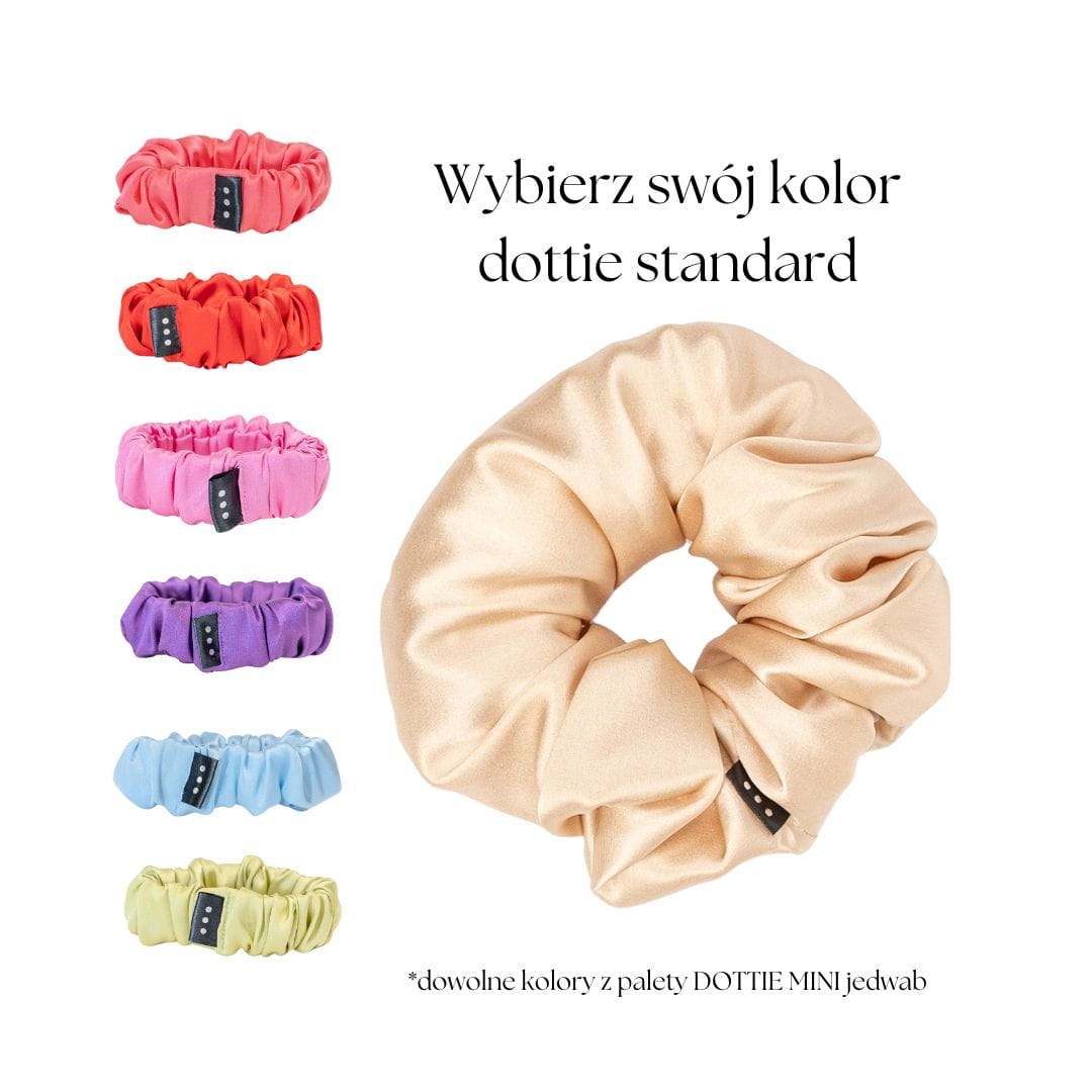 Dottie Standard to gumka w typie scrunchie o wymiarach:średnica dottie – 12 cmobwód dottie – 38 cmszerokość materiału – 5 cm